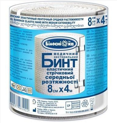 Бинт еластичний 8 см х 4,0 м середньої розтяжності ТМ Білосніжка